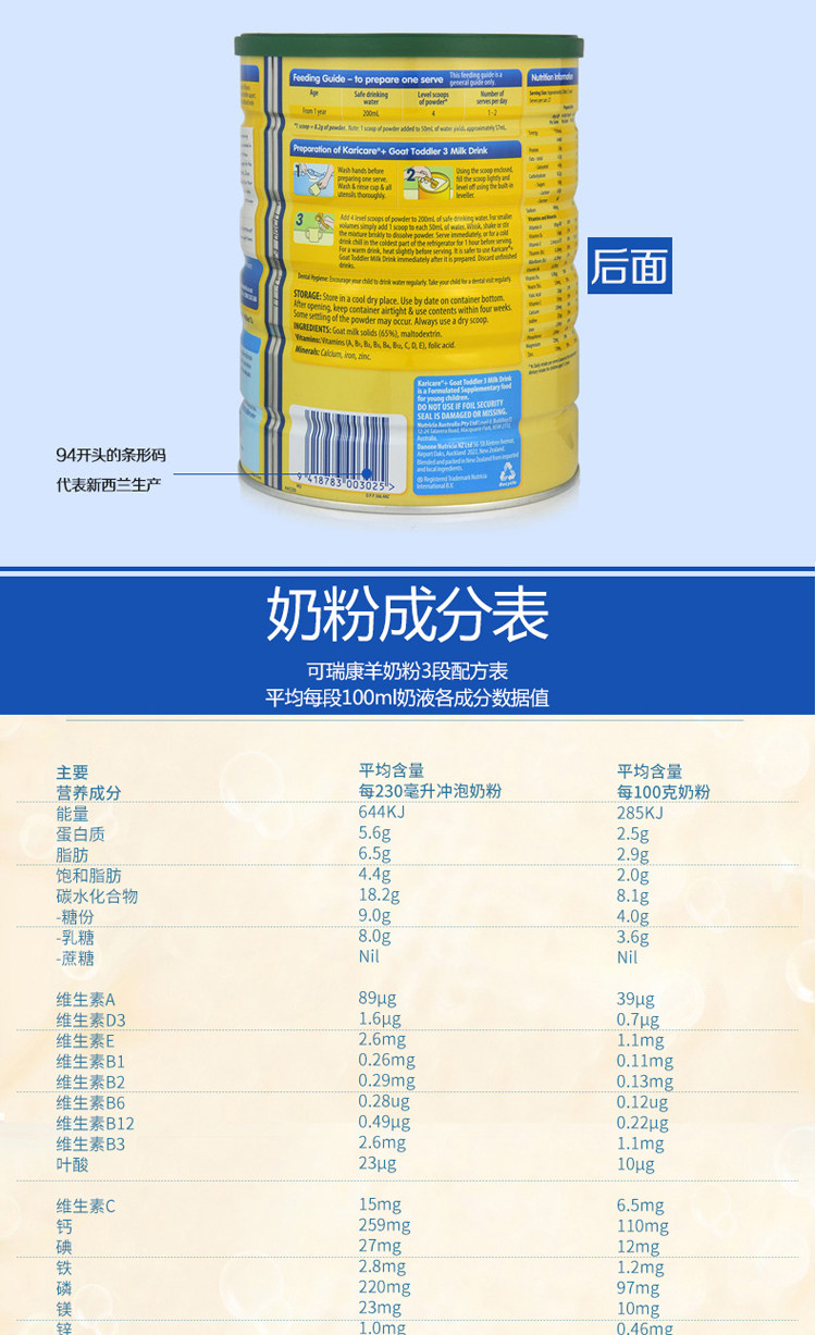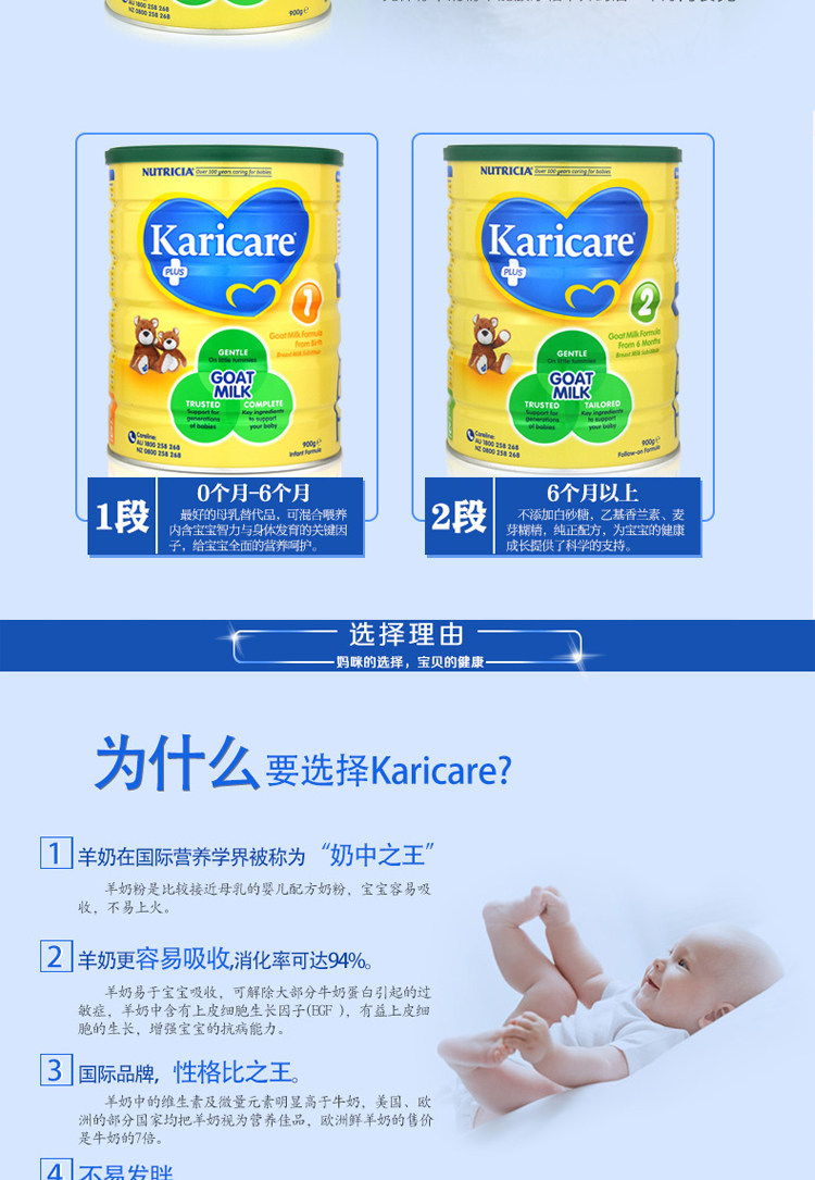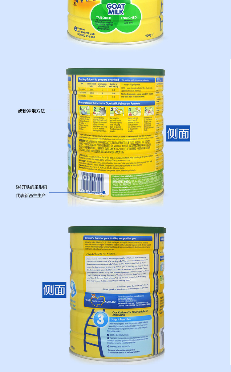 标签: 【包直邮】KARICARE可瑞康羊奶粉3段 6罐一箱